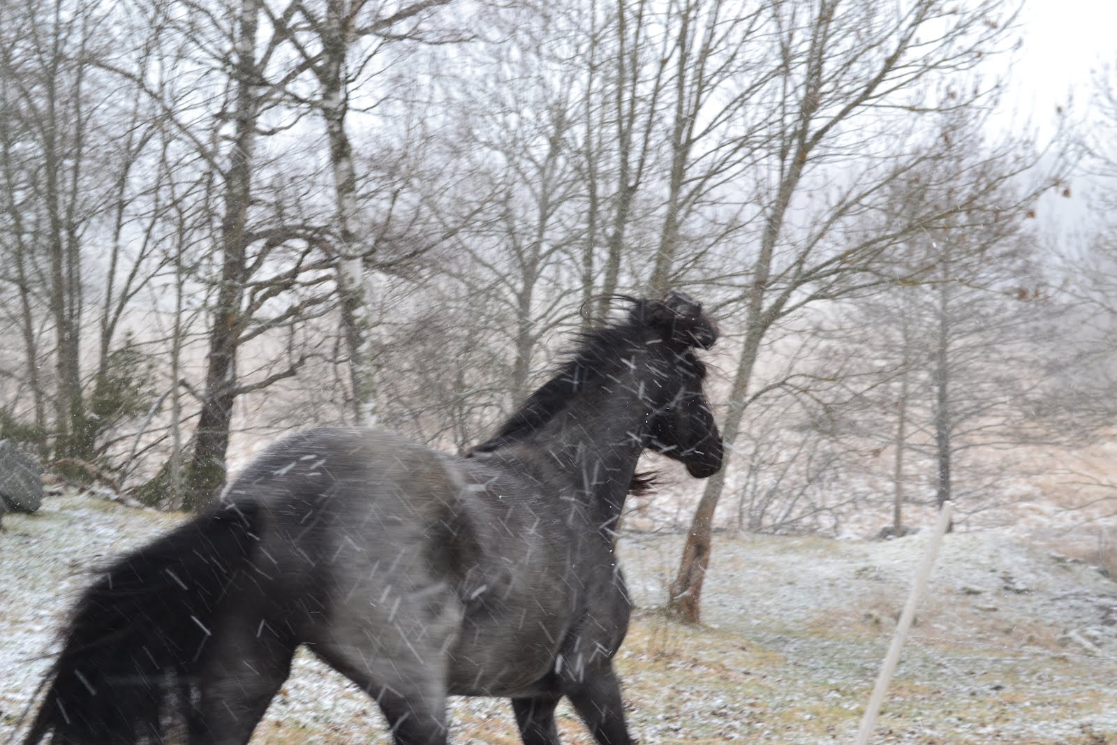 Några bilder på hur hästarna försökte undvika snön och vinden idag