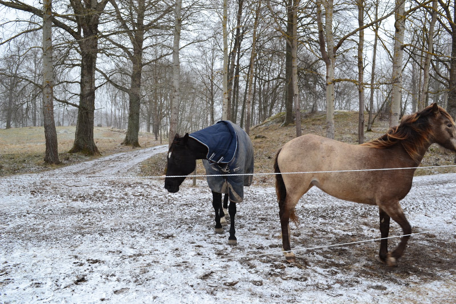 Some pictures of the horses that tries to avoid the snow and wind today.