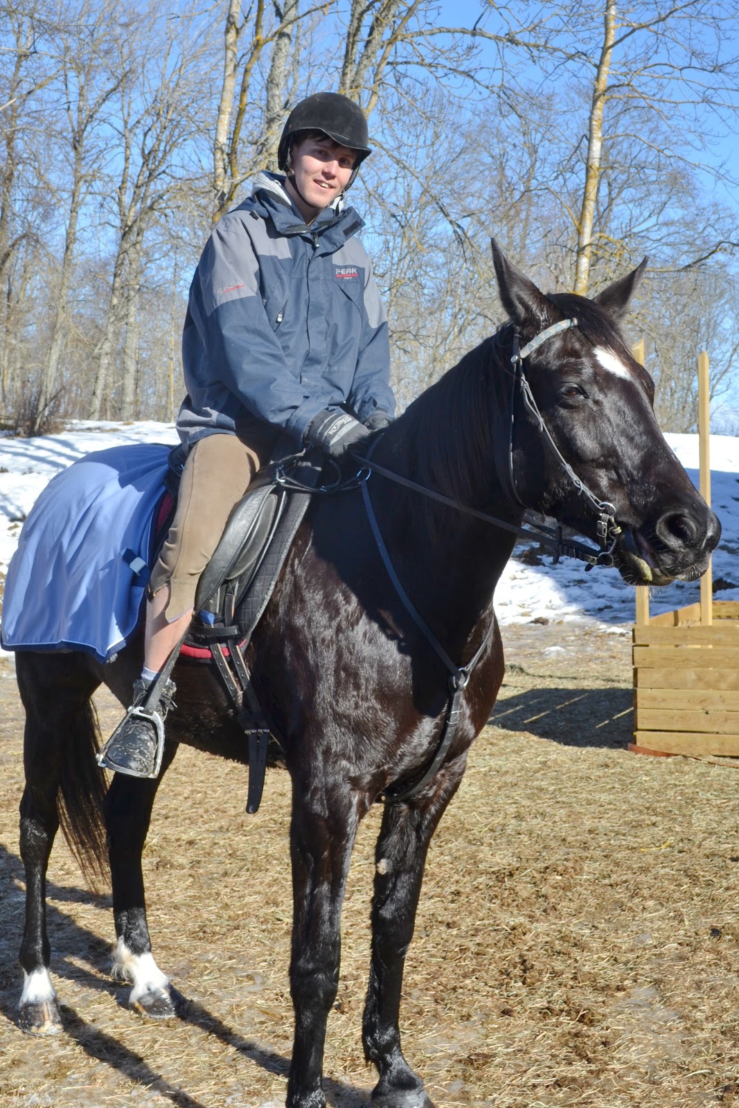 Today was a day when we tried to work Pepper with Björn. Some walking exercises that I thought worked well. Pepper wanted to chew a little bit, but otherwise it worked ok. Even if the ground at the arena was a bit icy I got on Peppers back and did some dressage – then we gave up because of the ground. While we did this Bunny carried around Tora, Björn’s daughter.